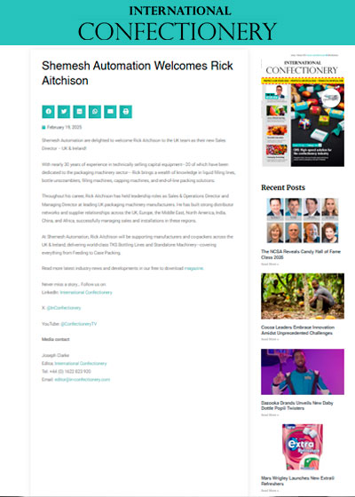 International Confectionery: Shemesh Automation Welcomes Rick Aitchison