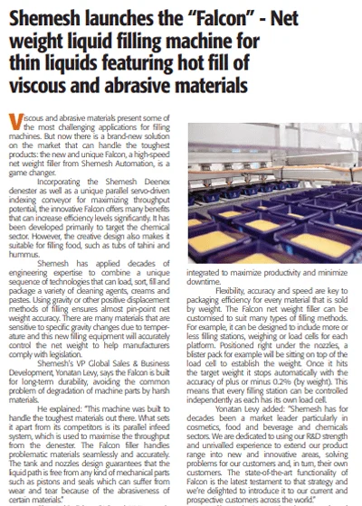 Shemesh launches the “Falcon” – Net weight liquid filling machine