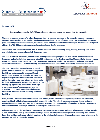 Shemesh to debut new packaging lines at Interpack 2023