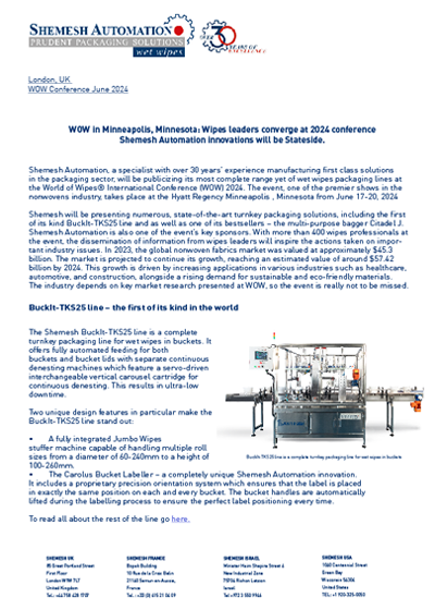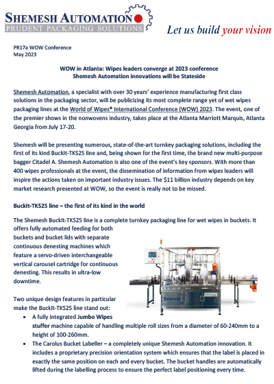 Join Shemesh Automation at GO Wipes Europe, 2023