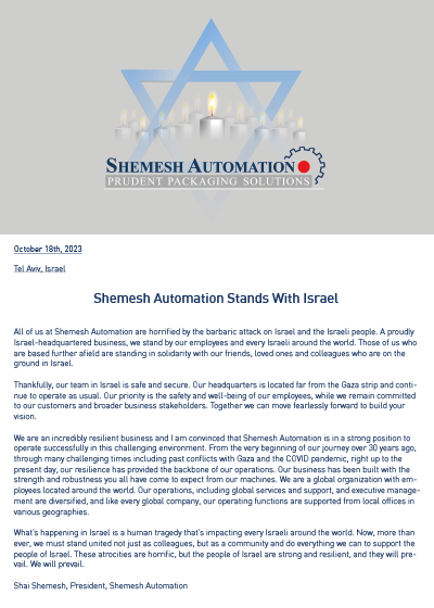 Shemesh Automation stands with Israel