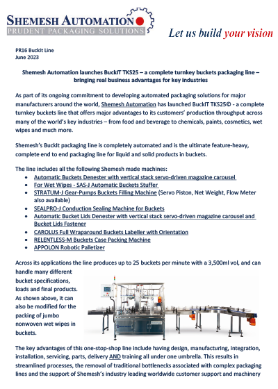 Shemesh Automation launches BuckIT TKS25