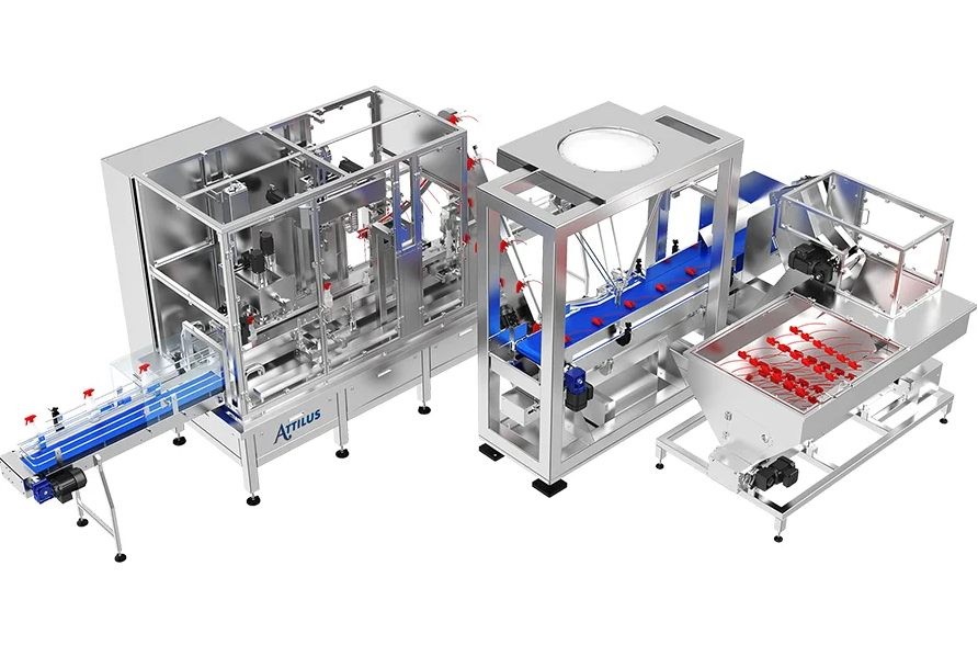 The machine is automated to identify different cap types and puck loaders. Furthermore, the line’s automatic bottle unscrambler uses a spider robot to provide precise bottle orientation, covering a broad range of bottle types common in cosmetics.
