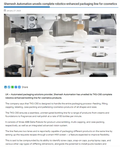 Machinery Update: A robotics-enhanced line handles cosmetics range