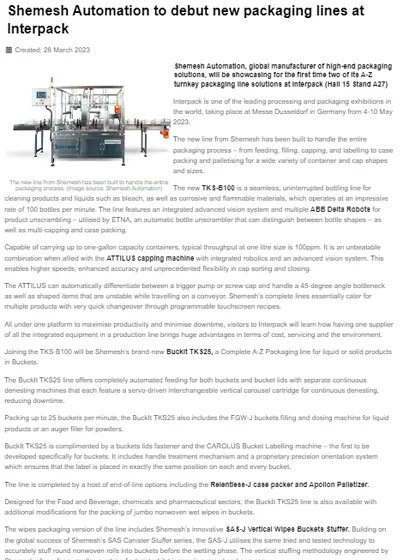 Packaging World: Un aperçu de Shemesh à Interpack 2023