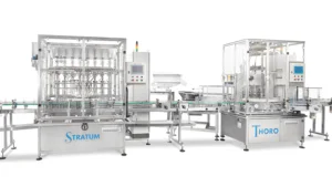 Alors que la ligne complète développée pour le fabricant comprenait le bouchage automatique par torsion, l’étiquetage enveloppant, l’étiquetage inviolable supérieur et latéral et l’emballage en barquettes, la vedette du salon était la remplisseuse automatique de produits alimentaires STRATUM.