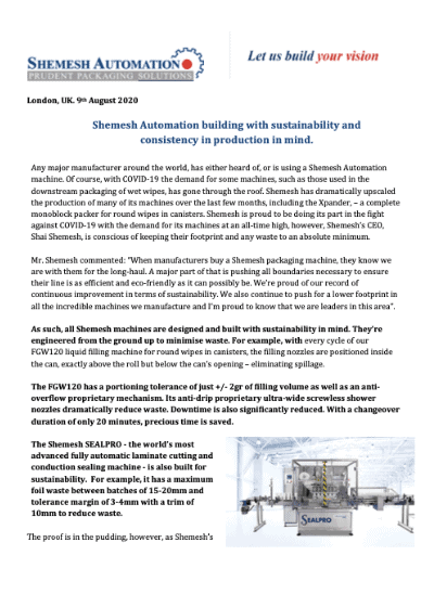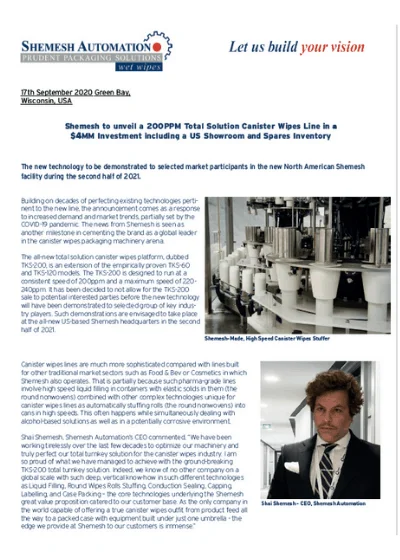 G - Shemesh Unveils 200PPM Canister Wipes Line & $4M US Showroom & Spare Parts Inventory