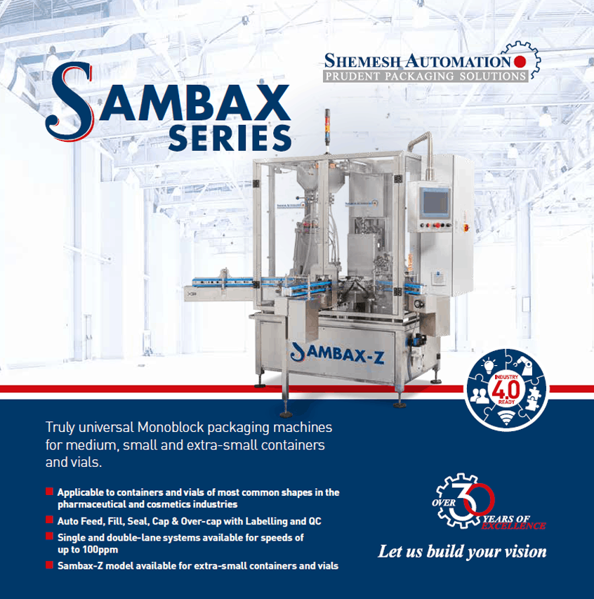Forte de plusieurs dizaines d’années d’expérience dans le domaine de l’industrie pharmaceutique et cosmétique, Shemesh Automation a réuni pour la première fois toutes ses technologies éprouvées dans une seule machine d’emballage monobloc dédiée au secteur pharmaceutique et cosmétique.