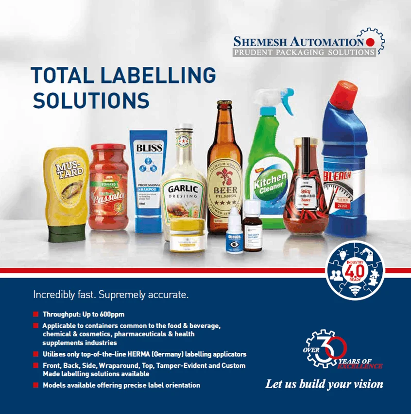 The wrap-around labelling system includes HERMA’s (Germany) rotary labeling applicator model H400, specifically engineered for the CAROLUS series, resulting in a highly accurate, incredibly fast, sustainable low-maintenance machine.