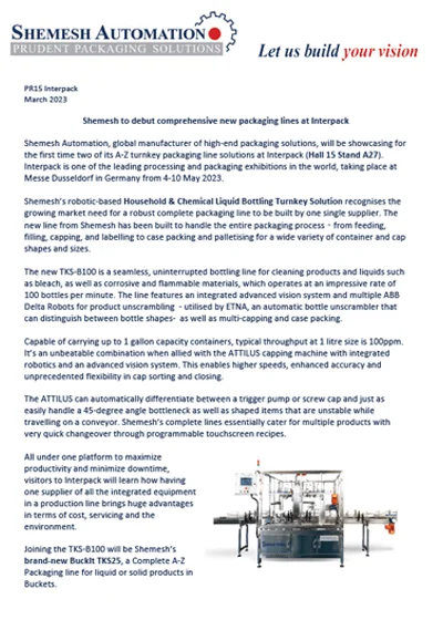 Shemesh to debut new packaging lines at Interpack 2023