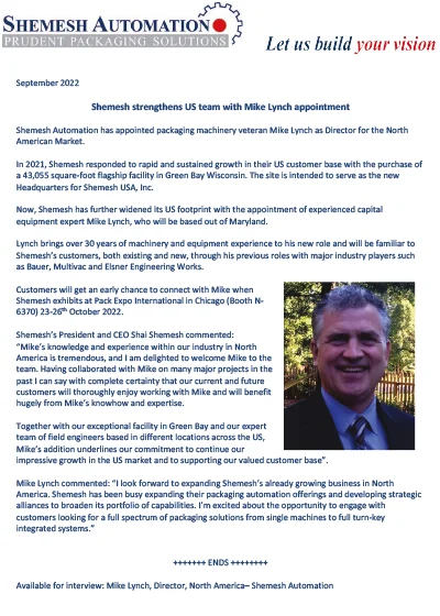 Shemesh strengthens US team with Mike Lynch appointment