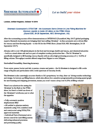Liquid Filling Machines Shemesh Automation PPMA Member
